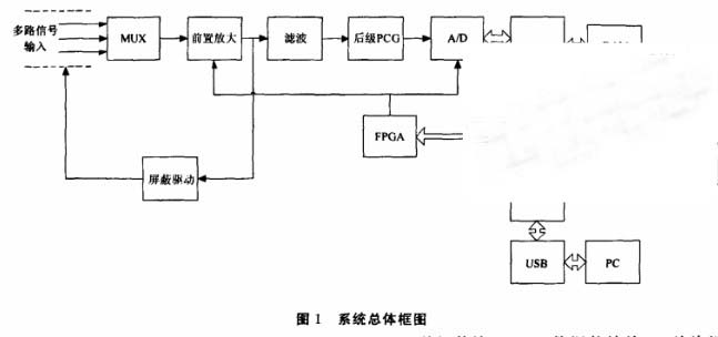 該系統(tǒng)主要由稱重傳感器和信號調(diào)理部分、 C8051 單片機(jī)主控部分、健盤和顯示部分、 USB 數(shù)據(jù)通信、RS232 通信 6 個部分組成.多路稱重傳感器信號經(jīng)過多路開關(guān)選擇輸入到信號調(diào)理部分.經(jīng)過放大、濾波、A/D轉(zhuǎn)換后再進(jìn)人單片機(jī),同時通過后級FPGA模塊調(diào)整信號放大倍數(shù).由單片機(jī)內(nèi)部定時器實現(xiàn)精準(zhǔn)的時間定位.可通過健盤設(shè)置通道號以及測量顯示的精度,由液晶(LCD)顯示出來,通過 RS232 及 USB 與其他單片機(jī)進(jìn)行通信或者和 PC機(jī)進(jìn)行通信.為了使此系統(tǒng)運行穩(wěn)定可靠及以后系統(tǒng)擴(kuò)充集成的方便,設(shè)計時使用了盡量少的芯片.
